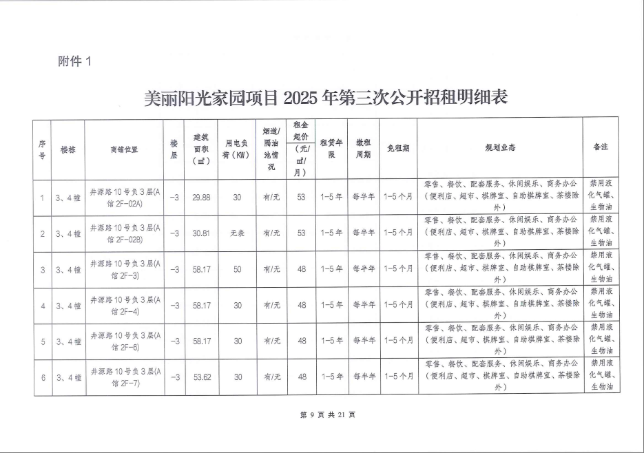 关于美丽阳光家园项目商业资产2025年第三次公开招租公告